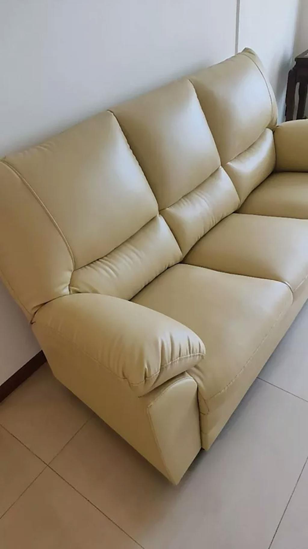 first time buying. the sofa is firm, but abit yellow than cream color. delivery is okay - call before coming over.